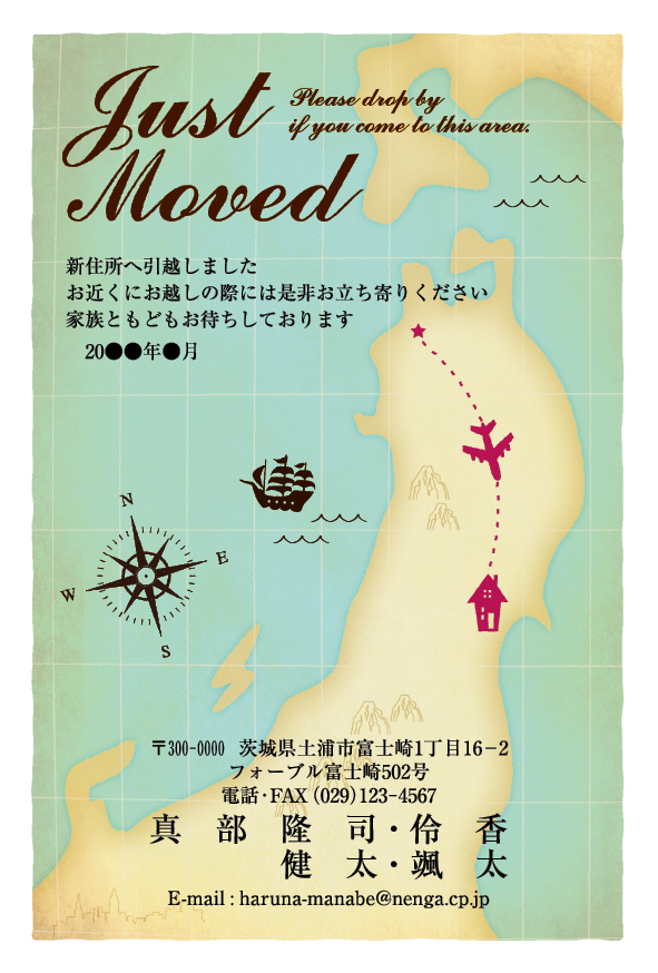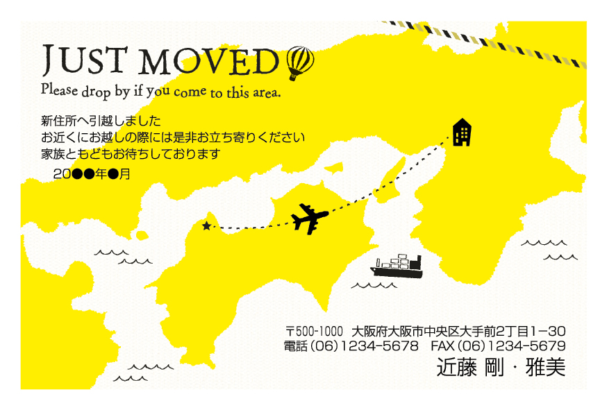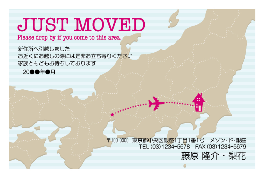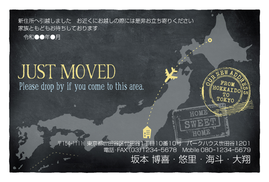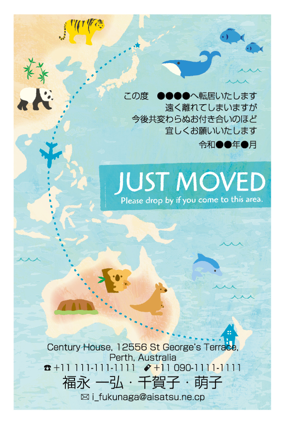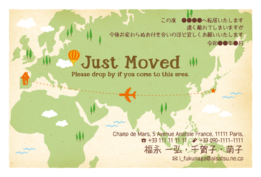 現住所、転居先のご住所にポイントをつけ、お客様だけのおハガキにカスタマイズいたします。(帰国MAPにも対応いたします)
